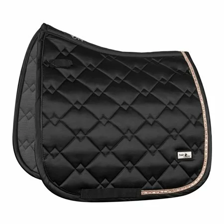 Moderní pevná podsedlová dečka luxusního provedení značky Fairplay. Hedvábný lehce lesklý povrch, olemováno dvěmi dekorativními šnůrkami mezi kterými je vsazen crystalkový provaz. Spodní část dečky je vyrobena z technického rychle schnoucího materiálu. K dečce lze přikoupit pasující čabraku.   celý popis